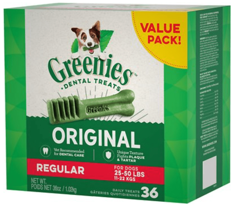 Greenies: If you are able to regularly brush your dog’s teeth, I’m impressed! However, if your dog sprints away from you as soon as you take out the tooth brush like mine does, Greenies are a happy medium! Greenies are a tasty, healthy treat recommended by vets for dental care. I have never met a dog that doesn’t love Greenies. Just make sure you follow the. weight recommendations on the box and get the right size for your pup! Also, remember to get your dog’s teeth cleaned once a year at the vet!